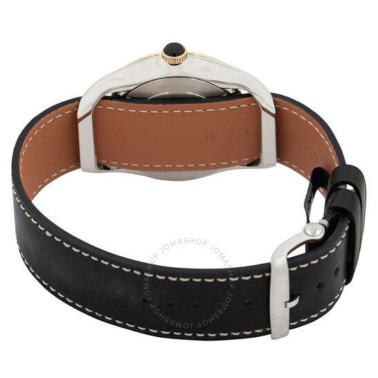 علبة فضية اللون من الفولاذ المقاوم للصدأ مع سوار أسود من جلد العجل. إطار ثابت من الفولاذ المقاوم للصدأ بلون ذهبي أصفر. ميناء أبيض بعقارب على طراز بريجيه وعلامات ساعات بأرقام عربية. علامات دقائق حول الحافة الخارجية. نوع الميناء: تناظري. حركة كوارتز. زجاج ياقوت مقاوم للخدش. غطاء خلفي صلب. شكل دائري، مقاس العلبة: 38 مم، سمكها: 9 مم. عرض السوار: 21 مم. مشبك بإبزيم. مقاومة للماء حتى عمق 30 مترًا / 100 قدم. الوظائف: ساعة، دقيقة. سلسلة 002. تصميم كاجوال. علامة الساعة: صناعة سويسرية. ساعة توم فورد 002 كوارتز للرجال بمينا بيضاء TF0120157528.