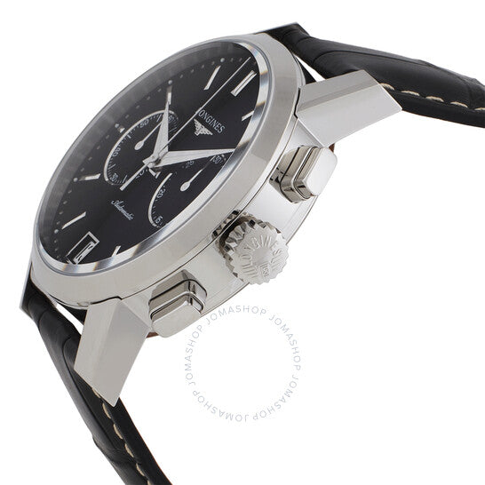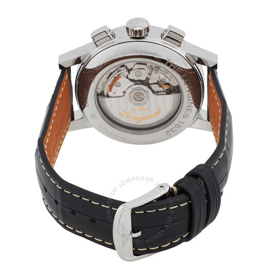 علبة من الفولاذ المقاوم للصدأ فضية اللون مع سوار جلدي أسود. إطار ثابت من الفولاذ المقاوم للصدأ فضي اللون. ميناء أسود بعقارب فضية اللون وعلامات ساعات. علامات دقائق حول الحافة الخارجية. نوع الميناء: تناظري. عرض التاريخ عند موضع الساعة السادسة. كرونوغراف - ميناءان فرعيان يعرضان: 60 ثانية و30 دقيقة. حركة أوتوماتيكية. زجاج ياقوت مقاوم للخدش. غطاء خلفي شفاف. شكل العلبة دائري، مقاسها 42 مم. مقاومة للماء حتى عمق 30 مترًا / 100 قدم. الوظائف: كرونوغراف، تاريخ، ساعة، دقيقة، ثانية. سلسلة 1832. تصميم ساعة كاجوال. علامة الساعة: صناعة سويسرية. ساعة لونجين 1832 كرونوغراف أوتوماتيكية للرجال بمينا سوداء، رقمها L48294520.