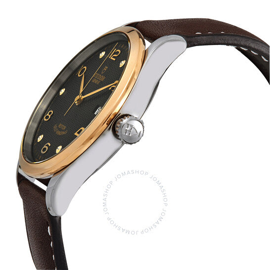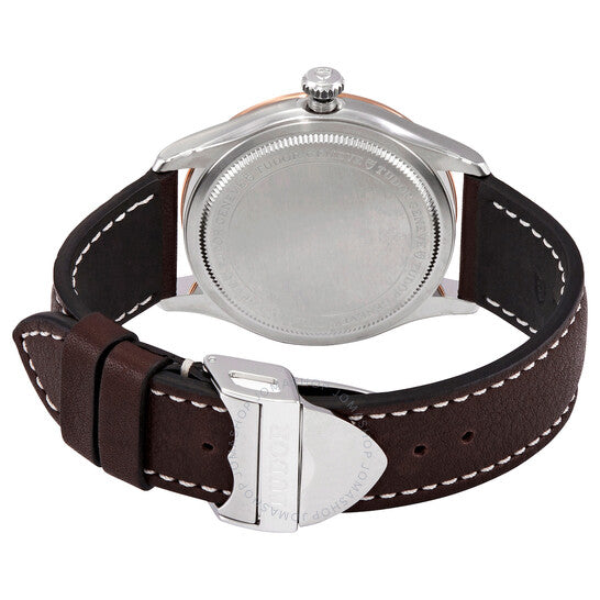 علبة من الفولاذ المقاوم للصدأ مع سوار جلدي بني. إطار ثابت من الذهب الوردي. ميناء أسود بعقارب بلون الذهب الوردي وعلامات ساعات متناوبة من الألماس والأرقام العربية. علامات دقائق حول الحافة الخارجية. نوع الميناء: تناظري. عرض التاريخ عند موضع الساعة الثالثة. حركة أوتوماتيكية من عيار تيودور 2824، مبنية على ETA 2824، تحتوي على 25 جوهرة، تنبض بمعدل 28800 ذبذبة في الساعة، ولديها احتياطي طاقة لمدة 38 ساعة تقريبًا. زجاج من الياقوت المقاوم للخدش. تاج لولبي. غطاء خلفي صلب. شكل دائري. حجم العلبة: 39 مم. مشبك قابل للطي مع مفتاح أمان. مقاومة للماء حتى عمق 100 متر / 330 قدمًا. الوظائف: التاريخ، الساعة، الدقيقة، الثانية. سلسلة 1926. تصميم ساعة كاجوال. علامة الساعة: صناعة سويسرية. ساعة تيودور 1926 أوتوماتيكية للرجال بمينا أسود مرصع بالألماس، M91551-0008.