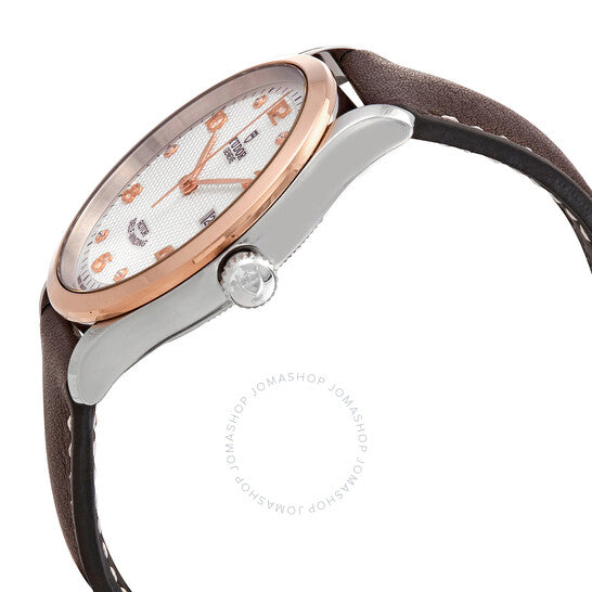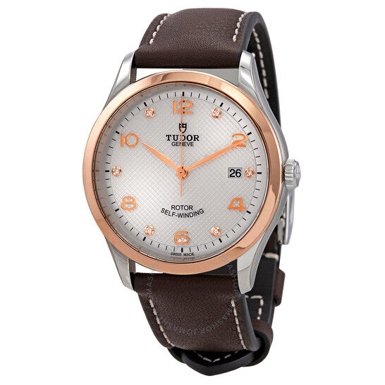علبة من الفولاذ المقاوم للصدأ مع سوار جلدي بني. إطار ثابت من الذهب الوردي. ميناء فضي بعقارب بلون الذهب الوردي وعلامات ساعات متناوبة من الألماس والأرقام العربية. علامات دقائق حول الحافة الخارجية. نوع الميناء: تناظري. عرض التاريخ عند موضع الساعة الثالثة. حركة أوتوماتيكية من عيار تيودور 2824، مبنية على ETA 2824، تحتوي على 25 جوهرة، تنبض بمعدل 28800 ذبذبة في الساعة، ولديها احتياطي طاقة يدوم حوالي 38 ساعة. زجاج من الياقوت المقاوم للخدش. تاج لولبي. غطاء خلفي صلب. شكل دائري. حجم العلبة: 39 مم. مشبك قابل للطي مع مفتاح أمان. مقاومة للماء حتى عمق 100 متر / 330 قدمًا. الوظائف: التاريخ، الساعة، الدقيقة، الثانية. سلسلة 1926. تصميم ساعة كاجوال. علامة الساعة: صناعة سويسرية. ساعة تيودور 1926 أوتوماتيكية للرجال بمينا فضي مرصع بالألماس، طراز M91551-0006.