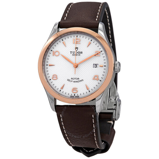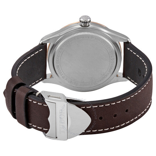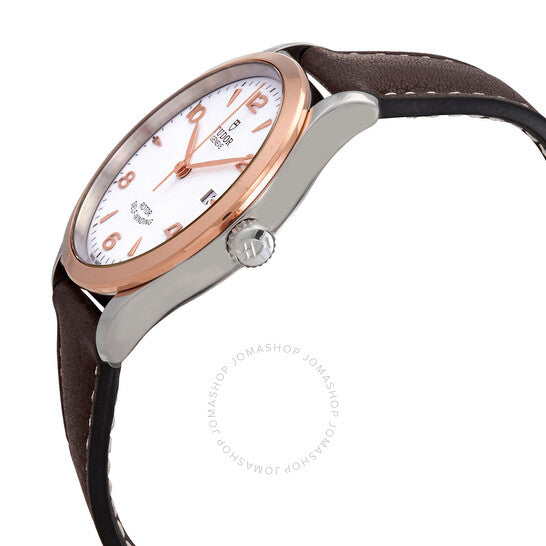 علبة من الفولاذ المقاوم للصدأ مع سوار جلدي بني. إطار ثابت من الذهب الوردي. ميناء أبيض بعقارب بلون الذهب الوردي، ومؤشرات ساعات متناوبة وأرقام عربية. علامات دقائق حول الحافة الخارجية. نوع الميناء: تناظري. عرض التاريخ عند موضع الساعة الثالثة. حركة أوتوماتيكية من عيار تيودور 2824، مبنية على ETA 2824، تحتوي على 25 جوهرة، تنبض بمعدل 28800 ذبذبة في الساعة، ولديها احتياطي طاقة يدوم حوالي 38 ساعة. زجاج من الياقوت المقاوم للخدش. تاج لولبي. غطاء خلفي صلب. شكل دائري. حجم العلبة: 39 مم. مشبك قابل للطي مع مفتاح أمان. مقاومة للماء حتى عمق 100 متر / 330 قدمًا. الوظائف: التاريخ، الساعة، الدقيقة، الثانية. سلسلة 1926. تصميم ساعة كاجوال. علامة الساعة: صناعة سويسرية. ساعة تيودور 1926 أوتوماتيكية للرجال بمينا أبيض M91551-0010.