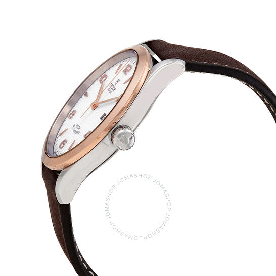 علبة من الفولاذ المقاوم للصدأ مع سوار جلدي بني. إطار ثابت من الذهب الوردي. ميناء أبيض بعقارب بلون الذهب الوردي، ومؤشرات ساعات متناوبة وأرقام عربية. علامات دقائق حول الحافة الخارجية. نوع الميناء: تناظري. عرض التاريخ عند موضع الساعة الثالثة. حركة أوتوماتيكية من عيار تيودور T601، مبنية على ETA 2824، تحتوي على 25 جوهرة، تنبض بمعدل 28800 ذبذبة في الساعة، ولديها احتياطي طاقة يدوم حوالي 38 ساعة. زجاج من الياقوت المقاوم للخدش. تاج لولبي. غطاء خلفي صلب. شكل دائري. حجم العلبة: 41 مم. مشبك قابل للطي مع مفتاح أمان. مقاومة للماء حتى عمق 100 متر / 330 قدمًا. الوظائف: التاريخ، الساعة، الدقيقة، الثانية. سلسلة 1926. تصميم ساعة فاخرة. علامة الساعة: صناعة سويسرية. ساعة تيودور 1926 أوتوماتيكية للرجال بمينا أبيض M91651-0010.