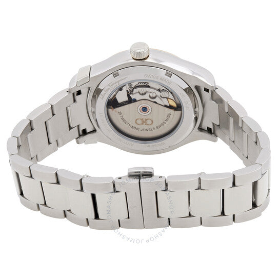 علبة وسوار من الفولاذ المقاوم للصدأ فضي اللون. إطار ثابت من الفولاذ المقاوم للصدأ فضي اللون. ميناء أسود بعقارب فضية اللون وعلامات ساعات. رمز غانسيو مزدوج عند موضع الساعة 8. نوع الميناء: تناظري. عرض التاريخ عند موضع الساعة 3. حركة أوتوماتيكية. زجاج ياقوت مقاوم للخدش. تاج قابل للسحب/الدفع. غطاء خلفي صلب. شكل دائري، مقاس العلبة: 42 مم. مشبك فراشة. الوظائف: التاريخ، الساعة، الدقيقة، الثانية. سلسلة 1927. تصميم ساعة كاجوال. علامة الساعة: صناعة سويسرية. ساعة فيراغامو 1927 أوتوماتيكية للرجال بمينا أسود SFU800224.