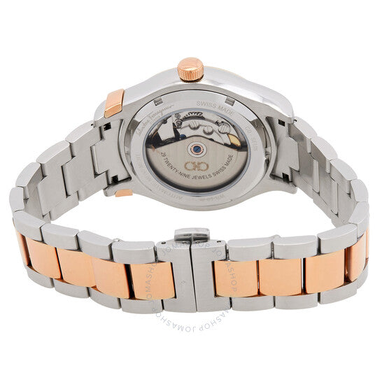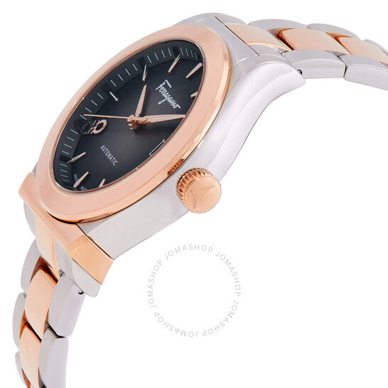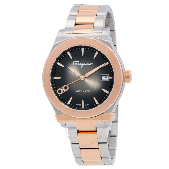 علبة من الفولاذ المقاوم للصدأ فضية اللون مع سوار من الفولاذ المقاوم للصدأ ثنائي اللون (فضي وذهبي وردي). إطار ثابت من الفولاذ المقاوم للصدأ ذهبي وردي. ميناء رمادي مع عقارب ومؤشرات ساعات ذهبية وردية اللون. رمز غانسيو مزدوج عند موضع الساعة 8. نوع الميناء: تناظري. عرض التاريخ عند موضع الساعة 3. آلية حركة أوتوماتيكية. زجاج ياقوت مقاوم للخدش. تاج قابل للسحب/الدفع. غطاء خلفي صلب. شكل دائري، حجم العلبة: 42 مم. مشبك فراشة. الوظائف: التاريخ، الساعة، الدقيقة، الثانية. سلسلة 1927. تصميم ساعة كاجوال. علامة الساعة: صناعة سويسرية. ساعة فيراغامو 1927 أوتوماتيكية للرجال بمينا رمادي SFU800424.