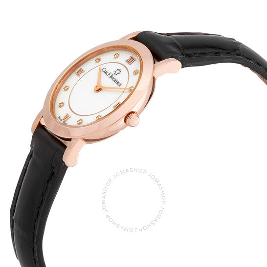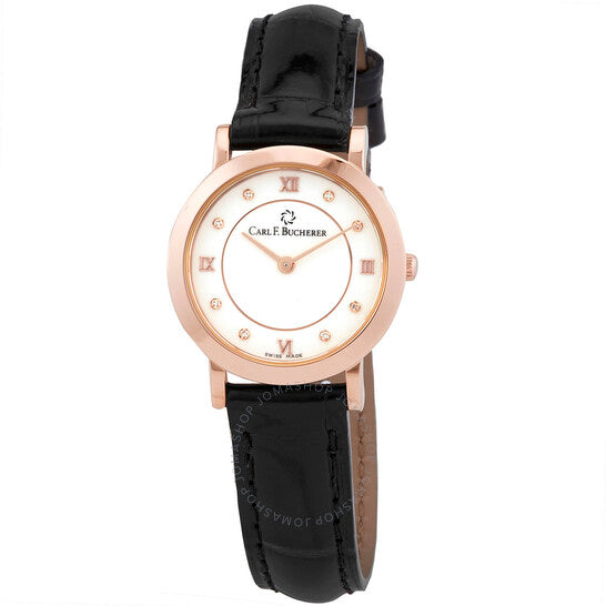 علبة من الذهب الوردي عيار ١٨ قيراطًا مع سوار أسود من جلد التمساح. إطار ثابت من الذهب الوردي عيار ١٨ قيراطًا. ميناء أبيض بعقارب بلون الذهب الوردي وعلامات ساعات من الألماس. أرقام رومانية عند مواضع الساعة ٣، ٦، ٩، و١٢. نوع الميناء: تناظري. حركة كوارتز. زجاج ياقوت مقاوم للخدش. تاج قابل للسحب/الدفع. شكل العلبة دائري. حجم العلبة: ٢٦ مم. سُمكها: ٤.٧٥ مم. مشبك تانغ. مقاومة للماء حتى عمق ٣٠ مترًا / ١٠٠ قدم. الوظائف: الساعات، الدقائق. سلسلة أدامافي. تصميم ساعة فاخر. علامة الساعة: صناعة سويسرية. تنوعات المنتج: ٣٦٩.١٦٢.٩. ساعة كارل إف. بوخرير أدامافي نسائية من الذهب الوردي عيار ١٨ قيراطًا، ٠٠.١٠٣٠٨.٠٣.٢٥.٠١.