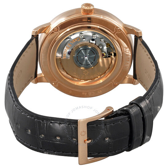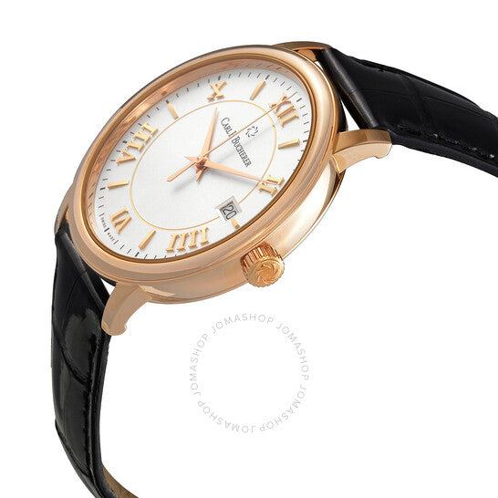 علبة من الذهب الوردي عيار 18 قيراطًا مع سوار أسود من جلد التمساح. إطار ثابت. ميناء فضي اللون بعقارب بلون الذهب الوردي وعلامات ساعات بأرقام رومانية. نوع الميناء: تناظري. عرض التاريخ عند موضع الساعة 3. حركة أوتوماتيكية من كارل إف. بوخرر، كاليبر CFB 1965، باحتياطي طاقة يدوم حوالي 42 ساعة. زجاج من الياقوت المقاوم للخدش. غطاء خلفي شفاف هيكلي. حجم العلبة: 39 مم. سُمكها: 7.55 مم. شكلها دائري. مقاومة للماء حتى عمق 30 مترًا / 100 قدم. وظائفها: التاريخ، الساعة، الدقيقة، الثانية. تصميم ساعة فاخر. علامة الساعة: صناعة سويسرية. رقم الصنف: 169.242.2. ساعة كارل إف. بوخرر أدامافي أوتوماتيكية للرجال، 00.10311.03.15.01.