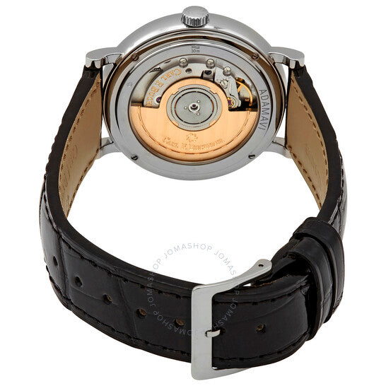 علبة من الفولاذ المقاوم للصدأ مع حزام جلدي أسود (أليجارور). إطار ثابت من الفولاذ المقاوم للصدأ. ميناء أبيض بعقارب رمادية وعلامات ساعات منقطة. أرقام رومانية عند الساعات 3 و6 و9 و12. علامات الدقائق. نوع الميناء: تناظري. عرض التاريخ بين الساعة 4 و5. حركة أوتوماتيكية من كارل إف. بوخرر، عيار CFB 1965، مع احتياطي طاقة لمدة 42 ساعة. زجاج ياقوت مقاوم للخدش. تاج قابل للسحب/الدفع. غطاء خلفي صلب. شكل دائري. حجم العلبة: 36 مم. سمكها: 7.5 مم. مشبك قابل للطي. مقاومة للماء حتى عمق 30 مترًا / 100 قدم. الوظائف: التاريخ، الساعة، الدقائق، الثواني. سلسلة أدامافي. طراز ساعة رسمية. علامة الساعة: صناعة سويسرية. ساعة كارل إف. بوخرر أدامافي أوتوماتيكية بمينا أبيض، 00.10307.02.25.01.