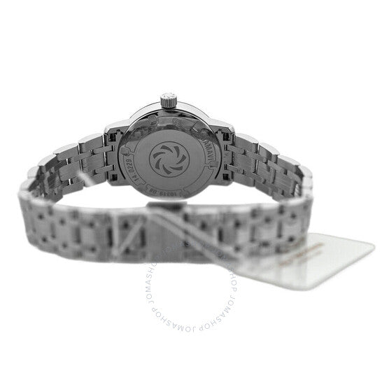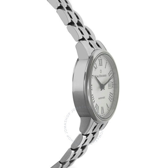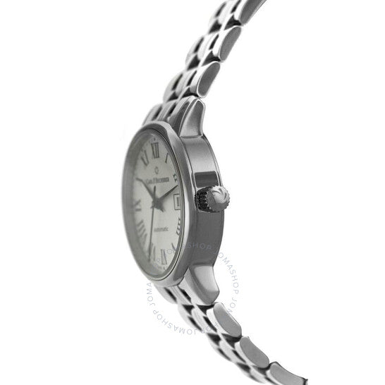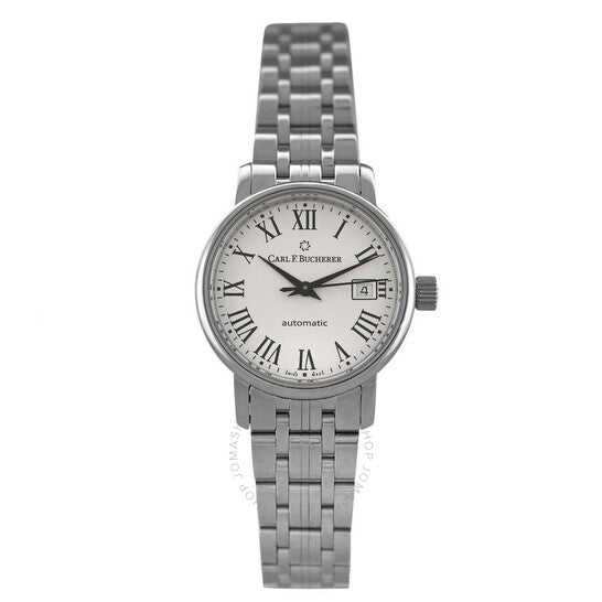 علبة وسوار من الفولاذ المقاوم للصدأ فضي اللون. إطار ثابت من الفولاذ المقاوم للصدأ فضي اللون. ميناء فضي اللون مع عقارب سوداء وأرقام رومانية وعلامات ساعات. علامات دقائق حول الحافة الخارجية. نوع الميناء: تناظري. عرض التاريخ عند موضع الساعة 3. حركة أوتوماتيكية من كارل إف. بوخرر، كاليبر CFB 1963، مع احتياطي طاقة لمدة 38 ساعة. كريستال ياقوت مقاوم للخدش. غطاء خلفي صلب. شكل العلبة دائري، مقاسها: 28 مم. مشبك قابل للطي مع مفتاح أمان. الوظائف: التاريخ، الساعة، الدقائق، الثواني. سلسلة أدامافي الكلاسيكية. تصميم ساعة كاجوال. علامة الساعة: صناعة سويسرية. ساعة كارل إف. بوخرر أدامافي الكلاسيكية الأوتوماتيكية للسيدات، مينا فضي، 00.10319.08.11.21.