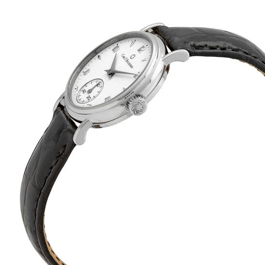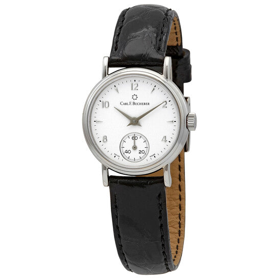 علبة من الذهب الأبيض عيار 18 قيراطًا فضية اللون، مع سوار أسود من جلد التمساح. إطار ثابت من الفولاذ المقاوم للصدأ فضي اللون. ميناء أبيض بعقارب فضية اللون على شكل دوفين، وأرقام عربية وعلامات ساعات متناوبة. علامات دقائق حول الحافة الخارجية. نوع الميناء: تناظري. ميناء فرعي واحد يعرض الثواني الصغيرة. حركة كارل إف. بوخرر كاليبر CFB 1968 يدوية التعبئة مع احتياطي طاقة لمدة 42 ساعة. زجاج ياقوت مقاوم للخدش. تاج قابل للسحب/الدفع. غطاء خلفي صلب. شكل دائري، حجم العلبة: 27 مم، سمكها: 6 مم. مشبك تانغ. مقاومة للماء حتى عمق 30 مترًا / 100 قدم. الوظائف: الساعات، الدقائق، الثواني. سلسلة أدامافي. تصميم ساعة فاخرة. علامة الساعة: صناعة سويسرية. تنوعات المنتج: 369.195.8. ساعة كارل اف بوخرير ادامافي للسيدات بمينا بيضاء 00.10306.02.26.01.