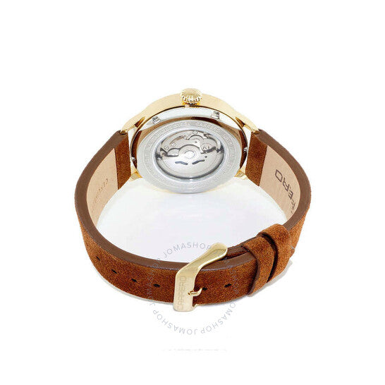 ساعة تورينو كاريرو للرجال، NH35 (أوتوماتيكية مرصعة بـ 24 جوهرة) مع ظهر مكشوف، ميناء فضي مفتوح على شكل قلب، هيكل من الفولاذ المقاوم للصدأ ذهبي اللون، سوار من الجلد الأصلي بني. هيكل من الفولاذ المقاوم للصدأ ذهبي اللون مع سوار من الجلد الأصلي بني. إطار ثابت من الفولاذ المقاوم للصدأ ذهبي اللون. ميناء فضي اللون مع عقارب ذهبية اللون وأرقام رومانية وعلامات للساعات. علامات للدقائق حول الحافة الخارجية. نوع الميناء: تناظري. عقارب مضيئة. عرض التاريخ عند موضع الساعة 3. حركة أوتوماتيكية من عيار TMI NH35، تحتوي على 24 جوهرة، تنبض بسرعة 21600 ذبذبة في الساعة، ولديها احتياطي طاقة لمدة 41 ساعة تقريبًا. كريستال معدني مقاوم للخدش. تاج قابل للسحب/الدفع. ظهر شفاف للعلبة. علبة دائرية الشكل، مقاس العلبة: ٤٥ مم، سُمكها: ١٥.٢٥ مم. عرض السوار: ٢٢ مم، طوله: ٧.٥ بوصة. مشبك بإبزيم. مقاومة للماء حتى عمق ١٠٠ متر / ٣٣٠ قدمًا. الوظائف: التاريخ، الساعة، الدقيقة، الثانية. معلومات إضافية: قلب مفتوح. سلسلة Aerodrome. طراز ساعة رسمية. علامة الساعة: Japan Movt. ساعة تورينو كاريرو Aerodrome أوتوماتيكية للرجال، مينا فضي، C1G1780-SVJ.