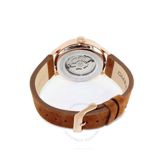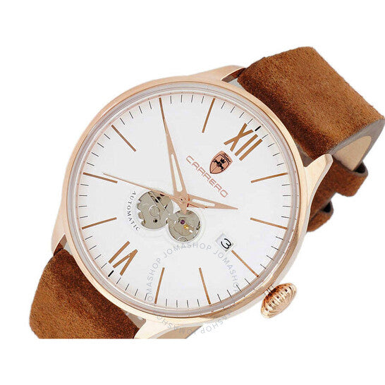 ساعة تورينو كاريرو للرجال، NH35 (أوتوماتيكية مرصعة بـ 24 جوهرة) مع ظهر مكشوف، ميناء أبيض منحني على شكل قلب مفتوح، هيكل من الفولاذ المقاوم للصدأ بلون وردي، سوار من الجلد الأصلي بني هيكل من الفولاذ المقاوم للصدأ بلون ذهبي وردي مع سوار من الجلد الأصلي بني. إطار ثابت من الفولاذ المقاوم للصدأ بلون ذهبي وردي. ميناء أبيض مع عقارب بلون ذهبي وردي وأرقام رومانية وعلامات للساعات. علامات للدقائق حول الحافة الخارجية. نوع الميناء: تناظري. عقارب مضيئة. عرض التاريخ عند موضع الساعة 3. حركة أوتوماتيكية من عيار TMI NH35، تحتوي على 24 جوهرة، تنبض بسرعة 21600 ذبذبة في الساعة، ولديها احتياطي طاقة لمدة 41 ساعة تقريبًا. كريستال معدني مقاوم للخدش. تاج سحب/دفع. ظهر شفاف للهيكل. شكل الهيكل مستدير، حجم الهيكل: 45 مم، سمك الهيكل: 15.25 مم. عرض السوار: ٢٢ مم، طوله: ٧.٥ بوصة. مشبك بإبزيم. مقاوم للماء حتى عمق ١٠٠ متر / ٣٣٠ قدمًا. الوظائف: التاريخ، الساعة، الدقيقة، الثانية. معلومات إضافية: قلب مفتوح. سلسلة Aerodrome. طراز ساعة رسمية. علامة الساعة: Japan Movt. ساعة تورينو كاريرو Aerodrome أوتوماتيكية للرجال، بمينا أبيض، طراز C1R1780-WTJ.