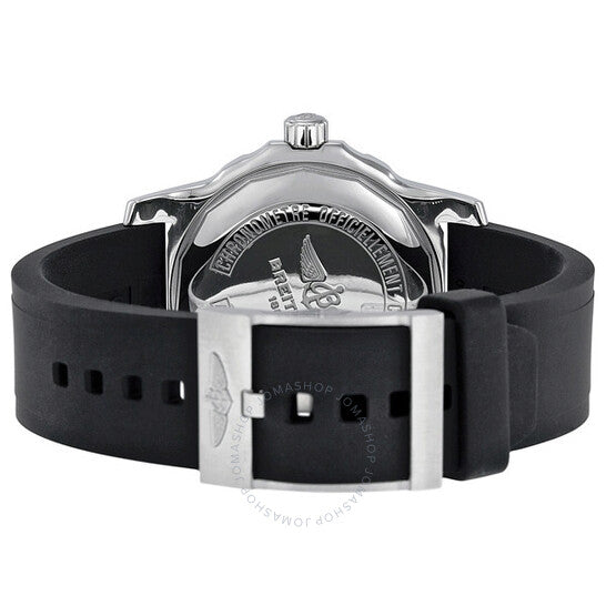 علبة من الفولاذ المقاوم للصدأ مع سوار مطاطي أسود. إطار ثابت من الفولاذ المقاوم للصدأ. ميناء أسود بعقارب ومؤشرات ساعات فضية اللون. أرقام عربية تُشير إلى الساعات 6 و9 و12. مؤشرات دقائق حول الحافة الخارجية. نوع الميناء: تناظري. عقارب ومؤشرات مضيئة. عرض التاريخ عند الساعة 3. حركة كوارتز. زجاج ياقوت مقاوم للخدش. تاج لولبي. غطاء خلفي صلب. قطر العلبة: 44 مم. سُمكها: 14 مم. شكلها دائري. مشبك تانغ. مقاومة للماء حتى عمق 500 متر / 1650 قدمًا. الوظائف: التاريخ، الساعة، الدقائق، الثواني. تصميم كاجوال. علامة الساعة: صناعة سويسرية. ساعة بريتلينغ أيروماين كولت للرجال A7438710-BB50BKPT.