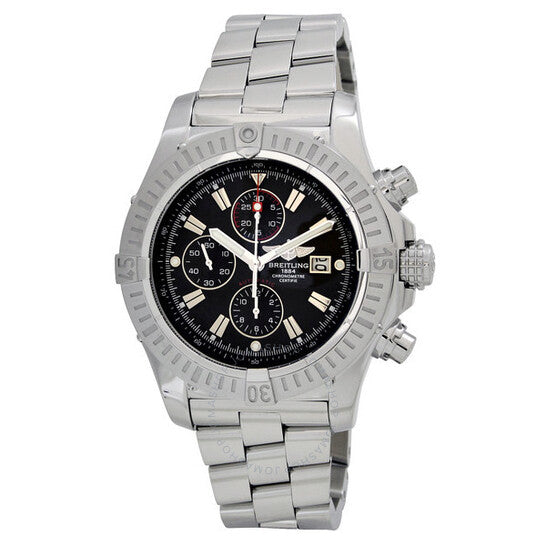 علبة من الفولاذ المقاوم للصدأ مع سوار من الفولاذ المقاوم للصدأ. إطار فولاذي دوار أحادي الاتجاه مزود بسقاطة. ميناء أسود بعقارب مضيئة وعلامات ساعات. علامات الدقائق بمقياس 1/100 حول الحافة الخارجية. نوع الميناء: تناظري. عقارب وعلامات ميناء مضيئة. عرض التاريخ عند موضع الساعة 3. كرونوغراف - ثلاثة أقراص فرعية تعرض: 60 ثانية، 30 دقيقة، و12 ساعة. حركة أوتوماتيكية. كريستال ياقوت مقاوم للخدش ومضاد للانعكاس. تاج مُغلق ببرغي - حشوتان. غطاء خلفي ببرغي. قطر العلبة: 48.6 مم. سمكها: 18.60 مم. شكلها دائري. عرض السوار: 20 مم / 24 مم. طول السوار: 8.5 بوصة. مشبك طي مخفي. مقاومة للماء حتى عمق 300 متر / 1000 قدم. الوظائف: الساعات، الدقائق، الثواني، التاريخ، الكرونوغراف. طراز الساعة الرياضية. ملصق الساعة: صناعة سويسرية. ساعة بريتلينج ايرومارين سوبر افينجر A1337011-B907SS.