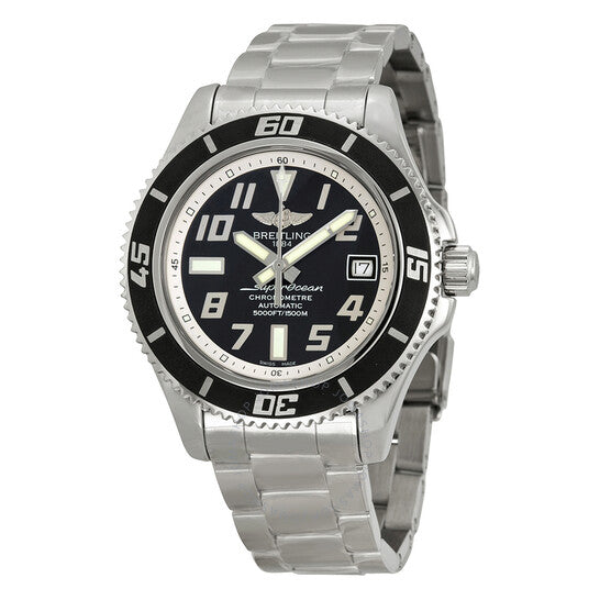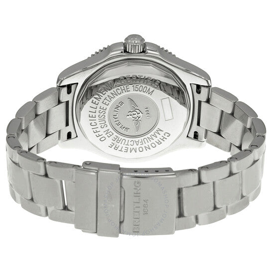 علبة من الفولاذ المقاوم للصدأ مع سوار من الفولاذ المقاوم للصدأ. إطار أحادي الاتجاه من الفولاذ المقاوم للصدأ مع حلقة علوية سوداء مطلية بالأيون. ميناء أسود وفضي مع عقارب فضية مضيئة وعلامات ساعات عربية. علامات دقائق حول الحافة الخارجية. نوع الميناء: تناظري. عقارب وعلامات مضيئة. عرض التاريخ عند موضع الساعة 3. حركة أوتوماتيكية من بريتلينغ كاليبر 17 مع احتياطي طاقة لمدة 40 ساعة. زجاج من الياقوت المقاوم للخدش. تاج مُغلق ببرغي. غطاء خلفي صلب. شكل دائري. حجم العلبة: 42 مم. سمكها: 15 مم. عرض السوار: 20 مم. طول السوار: 8.5 بوصة. مشبك قابل للطي بقفل مزدوج. مقاومة للماء حتى عمق 1500 متر / 5000 قدم. الوظائف: كرونومتر، تاريخ، ساعة، دقيقة، ثانية. طراز ساعة رسمية. علامة الساعة: صناعة سويسرية. إصدارات المنتج: A1736402 BA29SS، A1736402.BA29SS، A1736402BA29SS. ساعة بريتلينج أيرومين سوبر أوشن للرجال بمينا أسود A1736402-BA29SS.
