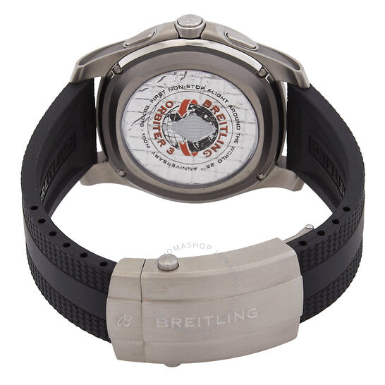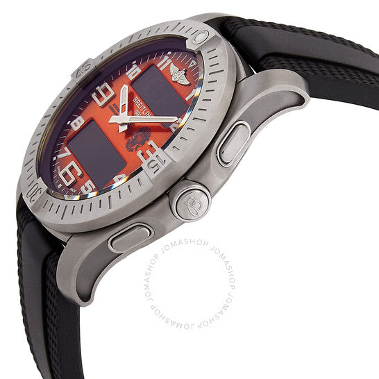 علبة من التيتانيوم فضية اللون مع سوار مطاطي أسود. إطار دوار ثنائي الاتجاه من التيتانيوم فضي اللون. ميناء رقمي بعقارب فضية اللون ومؤشرات ساعات بأرقام عربية. مؤشرات دقائق حول الحافة الخارجية. نوع الميناء: تناظري-رقمي. عقارب ومؤشرات مضيئة. حركة كوارتز بريتلينغ كاليبر B70. زجاج من الياقوت المقاوم للخدش. تاج لولبي. غطاء خلفي صلب. شكل دائري، مقاس العلبة: 43 مم، سمكها: 12.9 مم. عرض السوار: 22 مم. مشبك قابل للطي مع مفتاح أمان. مقاومة للماء حتى عمق 100 متر / 330 قدمًا. الوظائف: الساعات، الدقائق، الثواني. سلسلة إيروسبيس. طراز ساعة رياضية. علامة الساعة: صناعة سويسرية. ساعة بريتلينغ إيروسبيس كوارتز تناظرية-رقمية للرجال EB70101A1O1S1.