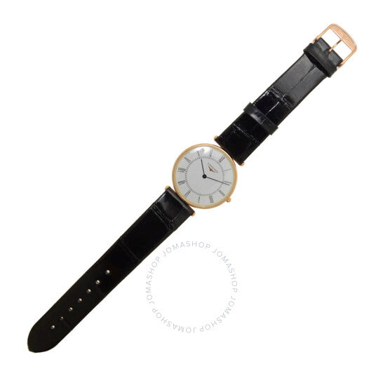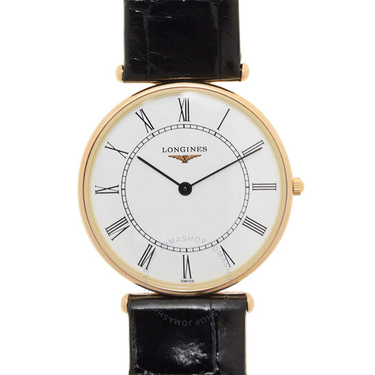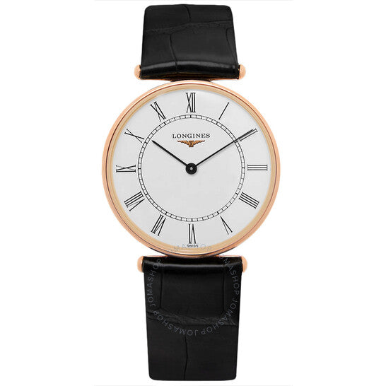 علبة من الذهب الوردي عيار 18 قيراطًا بلون الذهب الوردي، مع سوار أسود من جلد التمساح. إطار ثابت من الذهب الوردي عيار 18 قيراطًا بلون الذهب الوردي. ميناء أبيض بعقارب سوداء وعلامات ساعات بأرقام رومانية. مقياس دقائق حول الحافة الداخلية. نوع الميناء: تناظري. حركة كوارتز لونجين كاليبر L140. كريستال ياقوتي مقاوم للخدش. غطاء خلفي صلب. شكل دائري، مقاس العلبة: 33 مم. مشبك بإبزيم. مقاومة للماء حتى عمق 30 مترًا / 100 قدم. الوظائف: ساعة، دقيقة. سلسلة أغاسيز. تصميم ساعة فاخرة. علامة الساعة: صناعة سويسرية. ساعة لونجين أغاسيز كوارتز نسائية بمينا بيضاء L4.691.8.11.0.