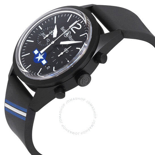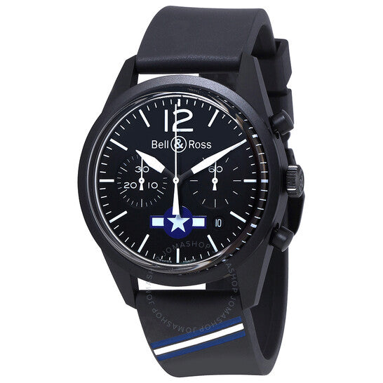 علبة من الفولاذ المقاوم للصدأ مطلية باللون الأسود بتقنية PVD مع سوار مطاطي أسود. إطار ثابت مطلي باللون الأسود بتقنية PVD. ميناء أسود بعقارب ومؤشرات ساعات سوداء مضيئة. يظهر رقم عربي عند موضع الساعة ١٢. علامات دقائق حول الحافة الخارجية. نوع الميناء: تناظري. عقارب ومؤشرات مضيئة. عرض التاريخ بين موضعي الساعة ٤ و٥. كرونوغراف - ميناءان فرعيان يعرضان: ٦٠ ثانية و٣٠ دقيقة. حركة أوتوماتيكية من عيار ETA ٢٨٩٤ مع احتياطي طاقة ٤٠ ساعة. كريستال ياقوت مقاوم للخدش. تاج لولبي. غطاء خلفي صلب. حجم العلبة: ٤١ مم. شكل دائري. مشبك تانغ. مقاومة للماء حتى عمق ١٠٠ متر / ٣٣٠ قدمًا. الوظائف: كرونوغراف، تاريخ، ساعة، دقيقة، ثانية. طراز ساعة فاخرة. ملصق الساعة: صناعة سويسرية. ساعة بيل آند روس إير فورس أوتوماتيكية للرجال BR126-AIRFORCEI.