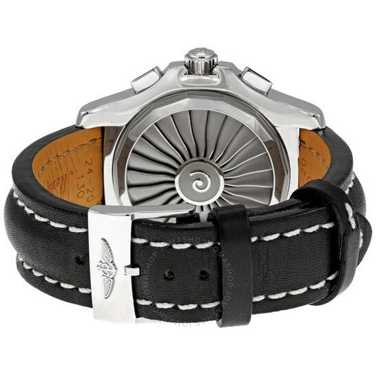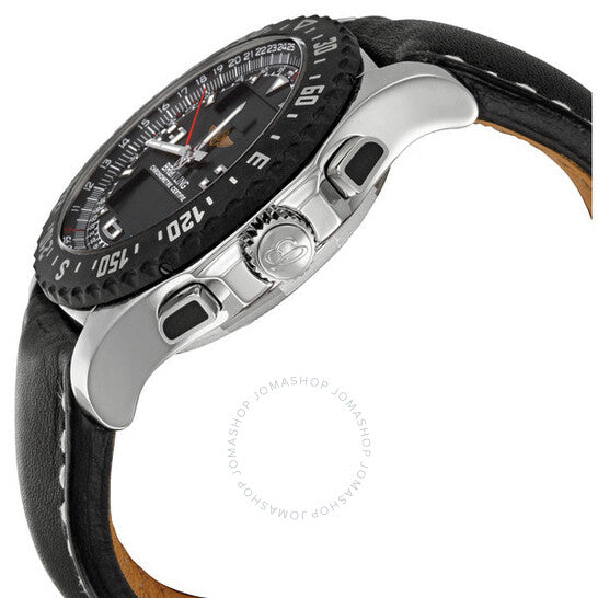 علبة من الفولاذ المقاوم للصدأ مع سوار جلدي أسود. إطار أسود ثنائي الاتجاه مطلي بالأيون. ميناء أسود بركانيّ مع عقارب مضيئة ومؤشرات ساعات. أرقام عربية تُشير إلى الساعات 3 و6 و9. تقويم دائم. آلية حركة سوبر كوارتز. زجاج ياقوتي مقاوم للخدش. قطر العلبة: 43.5 مم. سُمكها: 17.58 مم. مشبك تانغ. مقاومة للماء حتى عمق 50 مترًا/165 قدمًا. الوظائف: الساعات، الدقائق، الثواني، منبه، كرونوغراف بدقة 1/100 من الثانية (مع تقسيم الوقت وإضافة الوقت)، عد تنازلي، منطقتان زمنيتان مع منبه مستقل، التوقيت العالمي المنسق (UTC) وتقويم دائم رقمي، مسطرة حاسبة، مؤشر انتهاء عمر البطارية، إضاءة خلفية (متوافقة مع nvg). ساعة بريتلينغ إير وولف رافين بركان سوداء للرجال، A7836423-B911BKLT.