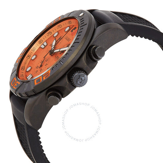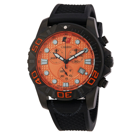علبة من الفولاذ المقاوم للصدأ باللون الأسود مع سوار مطاطي أسود. إطار أسود أحادي الاتجاه. ميناء برتقالي بعقارب وعلامات ساعات سوداء. علامات تاكيميتر حول الحافة الخارجية. نوع الميناء: تناظري. عقارب وعلامات مضيئة. عرض التاريخ عند موضع الساعة الرابعة. حركة كوارتز. زجاج معدني مقاوم للخدش. حجم العلبة: 42 مم. سُمك العلبة: 12.5 مم. شكل العلبة دائري. عرض السوار: 21 مم. طول السوار: 8.5 بوصة. مشبك بإبزيم. مقاومة للماء حتى عمق 50 مترًا / 165 قدمًا. الوظائف: التاريخ، الساعة، الدقائق، الثواني. طراز الساعة الرياضية. علامة الساعة: سويسرية. كاليبر أكرون للرجال SC-4A2-13-079.