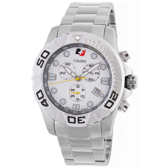 علبة من الفولاذ المقاوم للصدأ فضية اللون مع سوار فضي اللون. إطار أحادي الاتجاه من الفولاذ المقاوم للصدأ فضي اللون. ميناء أبيض بعقارب فضية اللون وعلامات ساعات منقطة. مقياس سرعة الدوران. نوع الميناء: تناظري. عقارب وعلامات مضيئة. عرض التاريخ عند موضع الساعة الرابعة. كرونوغراف - ثلاثة أقراص فرعية تعرض: ٦٠ ثانية، ٣٠ دقيقة، والتاريخ. آلية حركة كوارتز. زجاج معدني مقاوم للخدش. حجم العلبة: ٤٢ مم. سُمك العلبة: ١٢.٥ مم. شكل العلبة دائري. عرض السوار: ٢١.٥ مم. طول السوار: ٨.٥ بوصة. زر ضغط قابل للطي مع مشبك أمان. مقاومة للماء حتى عمق ٥٠ مترًا / ١٦٥ قدمًا. الوظائف: الساعات، الدقائق، الثواني، التاريخ المزدوج. ساعة أكرون الرجالية من كاليبر SC-5A2-04-001.