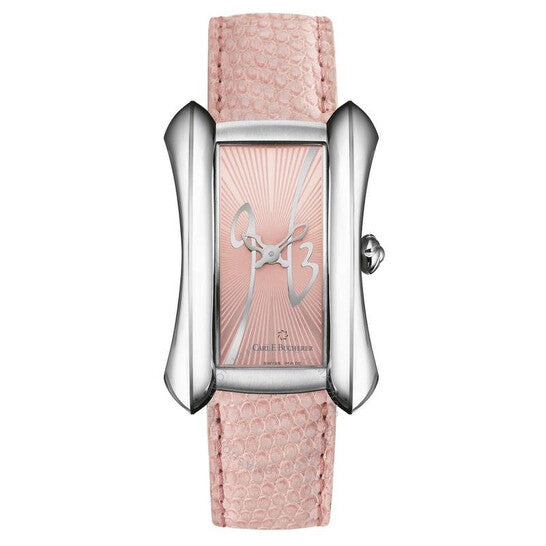 علبة فضية اللون من الفولاذ المقاوم للصدأ مع سوار جلدي وردي. إطار ثابت فضي اللون من الفولاذ المقاوم للصدأ. ميناء وردي مع عقارب فضية اللون ومؤشرات عربية عند الساعة 3 و9. نوع الميناء: تناظري. حركة كوارتز كارل إف. بوخرر كاليبر CFB 1852. زجاج ياقوت مقاوم للخدش. تاج قابل للسحب/الدفع. غطاء خلفي صلب. شكل فريد. حجم العلبة: 44 مم. مقاومة للماء حتى عمق 30 مترًا / 100 قدم. الوظائف: الساعات، الدقائق. تصميم ساعة فاخرة. علامة الساعة: صناعة سويسرية. رقم الصنف: 366.481.9. ساعة كارل إف. بوخرر ألاكريا ديفا النسائية 00.10705.08.92.01.