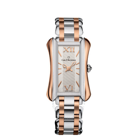 علبة من الذهب الوردي عيار 18 قيراطًا، وسوار من الذهب الوردي عيار 18 قيراطًا والفولاذ المقاوم للصدأ. إطار ثابت. ميناء فضي اللون مع عقارب بلون الذهب الوردي ومؤشرات ساعات بأرقام رومانية. نوع الميناء: تناظري. حركة كوارتز كارل إف. بوخرر كاليبر CFB 1850. زجاج ياقوت مقاوم للخدش. تاج قابل للسحب/الدفع. غطاء خلفي صلب. مقاس العلبة: 26.5 مم × 38 مم. سُمك العلبة: 7.4 مم. شكل فريد. قابلة للطي مع مشبك بزر ضغط. مقاومة للماء حتى عمق 30 مترًا / 100 قدم. الوظائف: الساعات، الدقائق. تصميم ساعة فاخرة. علامة الساعة: صناعة سويسرية. تنوعات المنتج: 366.360.1. ساعة كارل إف. بوخرر ألاكريا ميدي نسائية 00.10701.07.15.21.