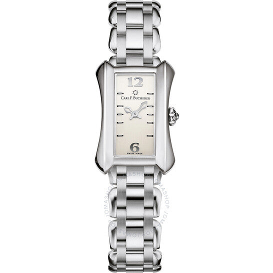 علبة من الفولاذ المقاوم للصدأ فضية اللون مع سوار فضي اللون. إطار ثابت من الفولاذ المقاوم للصدأ فضي اللون. ميناء بيج مع عقارب فضية اللون وأرقام عربية للساعات. نوع الميناء: تناظري. حركة كوارتز كارل إف. بوخرر كاليبر CFB 1850. زجاج ياقوت مقاوم للخدش. تاج قابل للسحب/الدفع. غطاء خلفي صلب. شكل فريد. حجم العلبة: 38 مم × 26.5 مم. مقاومة للماء حتى عمق 30 مترًا / 100 قدم. الوظائف: الساعات، الدقائق. تصميم ساعة فاخر. علامة الساعة: صناعة سويسرية. رقم الصنف: 366.326.9. ساعة كارل إف. بوخرر ألاكريا ميدي نسائية 00.10701.08.16.21.