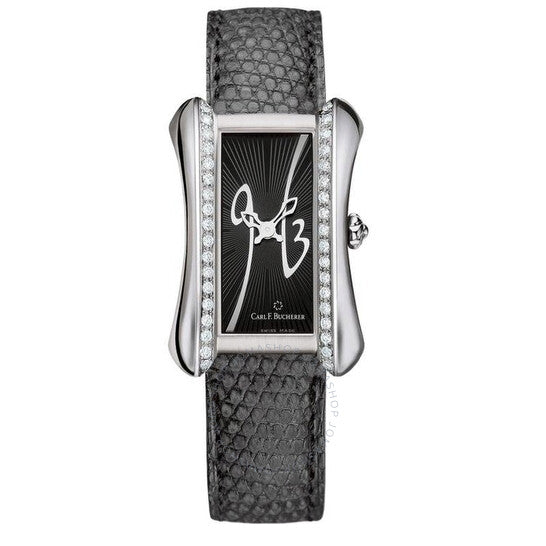 علبة من الفولاذ المقاوم للصدأ فضية اللون مع سوار جلدي أسود. إطار ثابت فضي اللون مرصع بالألماس. ميناء أسود بعقارب فضية اللون وأرقام عربية عند علامتي الساعة 3 و9. نوع الميناء: تناظري. حركة كوارتز. زجاج ياقوت مقاوم للخدش. تاج قابل للسحب/الدفع. شكل فريد للعلبة، مقاسها: 38 مم × 26.5 مم. مقاومة للماء حتى عمق 30 مترًا / 100 قدم. الوظائف: الساعة، الدقائق. سلسلة ألاكريا ميدي. تصميم ساعة فاخر. علامة الساعة: صناعة سويسرية. تنوعات المنتج: 366.332.7. ساعة كارل إف. بوخرير ألاكريا ميدي نسائية 00.10701.08.32.11.
