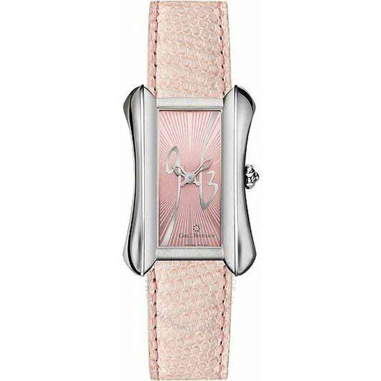 علبة فضية اللون من الفولاذ المقاوم للصدأ مع سوار جلدي وردي. إطار ثابت من الفولاذ المقاوم للصدأ فضي اللون. ميناء وردي مع عقارب فضية اللون وأرقام عربية عند علامتي الساعة الثالثة والتاسعة. نوع الميناء: تناظري. حركة كوارتز. زجاج ياقوت مقاوم للخدش. تاج قابل للسحب/الدفع. غطاء خلفي صلب. شكل فريد للعلبة، مقاسها: 40 مم × 28 مم. مقاومة للماء حتى عمق 30 مترًا / 100 قدم. الوظائف: الساعة، الدقائق. سلسلة ألاكريا ميدي. تصميم ساعة فاخر. علامة الساعة: صناعة سويسرية. تنوعات المنتج: 366.323.6. ساعة كارل إف. بوشرر ألاكريا ميدي نسائية 00.10701.08.92.01.
