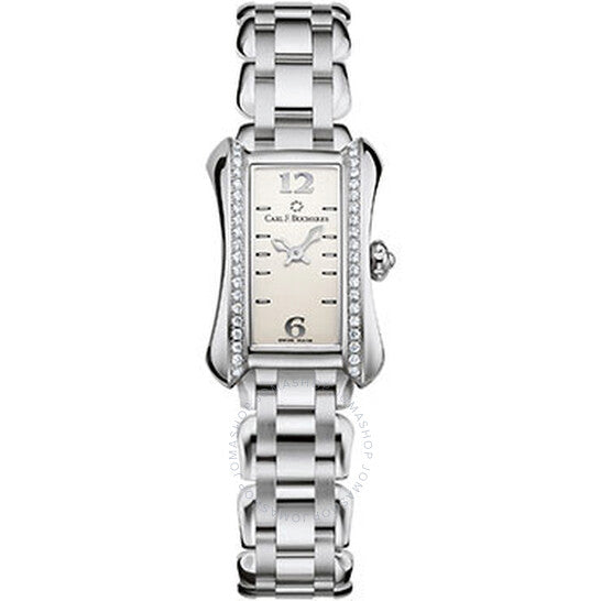 علبة من الفولاذ المقاوم للصدأ مرصعة بالألماس، مع سوار من الفولاذ المقاوم للصدأ. إطار ثابت. ميناء فضي اللون مع عقارب فضية اللون وأرقام عربية للساعات. نوع الميناء: تناظري. حركة كوارتز. زجاج ياقوت مقاوم للخدش. تاج قابل للسحب/الدفع. حجم العلبة: ٢١ مم × ٣٠ مم. سُمك العلبة: ٦.٢ مم. شكل العلبة فريد. مقاومة للماء حتى عمق ٣٠ مترًا / ١٠٠ قدم. الوظائف: الساعات، الدقائق. تصميم ساعة فاخرة. علامة الساعة: صناعة سويسرية. رقم المنتج: ٣٦٦.٣٠٨.٧. ساعة كارل إف. بوخرير ألاكريا ميني النسائية ٠٠.١٠٧٠٣.٠٨.١٦.٣١.