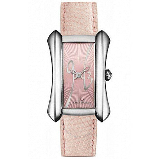 علبة من الفولاذ المقاوم للصدأ فضية اللون مع سوار جلدي وردي. إطار ثابت من الفولاذ المقاوم للصدأ فضي اللون. ميناء وردي مع عقارب فضية اللون وأرقام عربية للساعات. نوع الميناء: تناظري. حركة كوارتز كارل إف. بوخرر كاليبر CFB 1850. زجاج ياقوت مقاوم للخدش. تاج قابل للسحب/الدفع. شكل علبة فريد. حجم العلبة: 30 مم. مقاومة للماء حتى عمق 30 مترًا / 100 قدم. الوظائف: الساعات، الدقائق. تصميم ساعة فاخرة. علامة الساعة: صناعة سويسرية. تنوعات المنتج: 366.310.1. ساعة كارل إف. بوخرر ألاكريا ميني النسائية 00.10703.08.92.01.