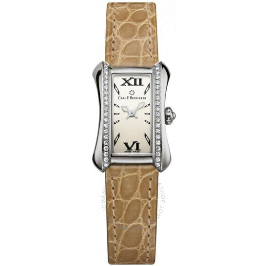 علبة من الفولاذ المقاوم للصدأ فضية اللون مع سوار جلدي بني. إطار ثابت مرصع بالألماس فضي اللون. ميناء فضي اللون مع عقارب فضية اللون ومؤشرات ساعات بأرقام رومانية. نوع الميناء: تناظري. حركة كوارتز كارل إف. بوخرر كاليبر CFB 1850. زجاج ياقوت مقاوم للخدش. تاج قابل للسحب/الدفع. غطاء خلفي صلب. شكل فريد للعلبة، أبعادها: 30 مم × 21 مم، سُمكها: 6.2 مم. مقاومة للماء حتى عمق 30 مترًا / 100 قدم. الوظائف: الساعات والدقائق. معلومات إضافية: علبة مرصعة بـ 40 ماسة fc tw vvs 0.3 قيراط. سلسلة ألاكريا برينسيس. تصميم ساعة فاخر. علامة الساعة: صناعة سويسرية. تنوعات المنتج: 366.302.1. ساعة كارل إف. بوخرر ألاكريا برينسيس النسائية 00.10703.08.15.11.