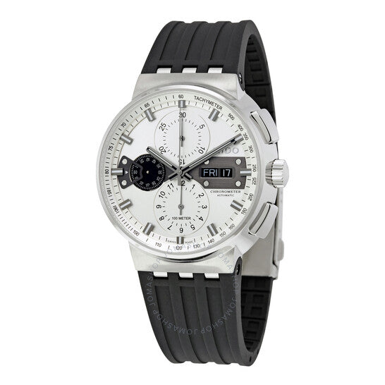 علبة من الفولاذ المقاوم للصدأ مع سوار مطاطي أسود. إطار ثابت من الفولاذ المقاوم للصدأ. ميناء فضي مع عقارب مضيئة بلون فضي وعلامات ساعات. علامات دقائق. مقياس سرعة الدوران حول الحافة الخارجية. نوع الميناء: تناظري. عقارب وعلامات مضيئة. عرض يوم الأسبوع والتاريخ عند موضع الساعة 3. كرونوغراف - ثلاثة أقراص فرعية تعرض: 60 ثانية، 60 دقيقة، و12 ساعة. حركة أوتوماتيكية. زجاج ياقوت مقاوم للخدش. تاج لولبي. غطاء خلفي شفاف. حجم العلبة: 44 مم. سمكها: 14.6 مم. شكلها دائري. عرض السوار: 22 مم. مشبك قابل للطي مع مفتاح أمان. مقاومة للماء حتى عمق 100 متر / 330 قدم. الوظائف: التاريخ، اليوم، الساعة، الدقيقة، الثانية، مقياس سرعة الدوران. طراز ساعة رسمية. علامة الساعة: صناعة سويسرية. ساعة ميدو كرونوغراف أوتوماتيكية للرجال، طراز M0066151703100.