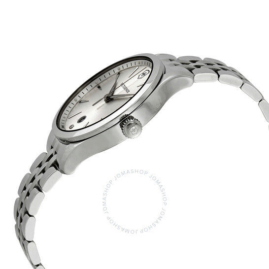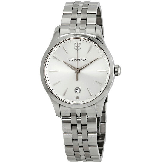 علبة من الفولاذ المقاوم للصدأ مع سوار من الفولاذ المقاوم للصدأ. إطار ثابت من الفولاذ المقاوم للصدأ. ميناء رمادي مع عقارب ومؤشرات ساعات فضية مضيئة. مؤشرات دقائق حول الحافة الخارجية. نوع الميناء: تناظري. عقارب ومؤشرات مضيئة. عرض التاريخ فوق موضع الساعة السادسة. حركة كوارتز روندا عيار 705. كريستال ياقوت مقاوم للخدش. تاج قابل للسحب/الدفع. غطاء خلفي صلب. شكل دائري. حجم العلبة: 35 مم. مشبك قابل للطي. مقاومة للماء حتى عمق 100 متر / 330 قدمًا. الوظائف: التاريخ، الساعات، الدقائق، الثواني، مؤشر عمر البطارية. طراز الساعة العسكري. علامة الساعة: صناعة سويسرية. ساعة فيكتورينوكس ألاينس نسائية من الفولاذ المقاوم للصدأ بمينا رمادي 241828.