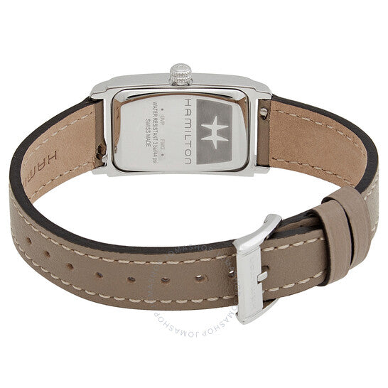 علبة من الفولاذ المقاوم للصدأ مع سوار جلدي بني. إطار ثابت من الفولاذ المقاوم للصدأ. ميناء فضي بعقارب فضية اللون وأرقام رومانية متناوبة وعلامات ساعات. نوع الميناء: تناظري. ميناء فرعي للثواني الصغيرة. حركة كوارتز عيار ETA 980.153. زجاج معدني مقاوم للخدش. تاج قابل للسحب/الدفع. غطاء خلفي صلب. شكل مستطيل. أبعاد العلبة: 18.7 مم × 27 مم. سمك العلبة: 7 مم. عرض السوار: 14 مم. مشبك تانغ. مقاومة للماء حتى عمق 30 مترًا / 100 قدم. الوظائف: الساعات، الدقائق، الثواني الصغيرة. سلسلة أردمور الأمريكية الكلاسيكية. تصميم كاجوال. علامة الساعة: صناعة سويسرية. ساعة هاميلتون الأمريكية الكلاسيكية أردمور النسائية H11221514.