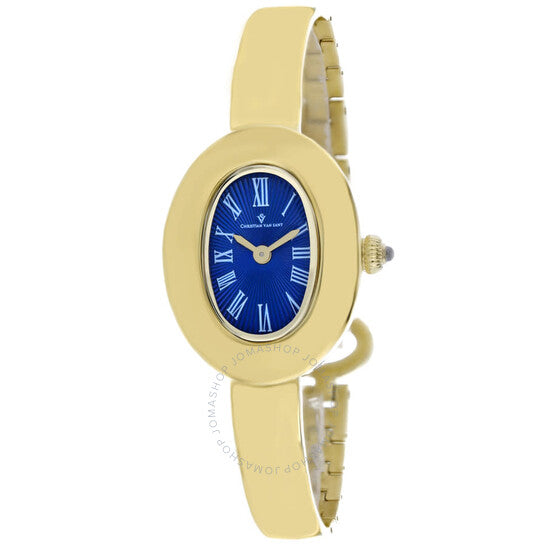 علبة من الفولاذ المقاوم للصدأ، سوار من الفولاذ المقاوم للصدأ، ميناء أزرق، حركة كوارتز، معدن مقاوم للخدش، مقاومة للماء حتى عمق 30 مترًا (30 مترًا) - 100 قدم. علبة وسوار من الفولاذ المقاوم للصدأ بلون ذهبي أصفر. إطار ثابت من الفولاذ المقاوم للصدأ بلون ذهبي أصفر. ميناء أزرق مع عقارب بلون ذهبي أصفر وعلامات ساعات رومانية. نوع الميناء: تناظري. حركة كوارتز. زجاج معدني مقاوم للخدش. هيكل بيضاوي الشكل، مقاسه: 26 مم، سُمكه: 12 مم. عرض السوار: 8 مم، طوله: 7.5 بوصة. مشبك مجوهرات. مقاومة للماء حتى عمق 30 مترًا (100 قدم). الوظائف: الساعات، الدقائق. سلسلة أنورا. ساعة أنيقة. ساعة كريستيان فان سانت أنورا كوارتز نسائية بمينا زرقاء CV4337.