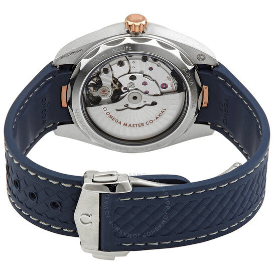 علبة من الفولاذ المقاوم للصدأ مع سوار مطاطي أزرق. إطار ثابت من الذهب الوردي عيار 18 قيراطًا. ميناء أزرق مع عقارب مضيئة بلون الذهب الوردي وعلامات ساعات. علامات دقائق بأرقام عربية (بفاصل 5 دقائق). علامات دقائق حول الحافة الخارجية. عقارب وعلامات مضيئة. نافذة عرض التاريخ عند موضع الساعة السادسة. ميناء فرعي للثواني الصغيرة. حركة أوتوماتيكية من أوميغا كاليبر 8916. زجاج ياقوت مقاوم للخدش. تاج لولبي. غطاء خلفي شفاف. شكل دائري. حجم العلبة: 41 مم. سمكها: 13.5 مم. عرض السوار: 20 مم. مشبك قابل للطي. مقاومة للماء حتى عمق 150 مترًا / 500 قدم. الوظائف: التاريخ، الساعة، الدقيقة، الثانية. سلسلة أكوا تيرا. تصميم ساعة كاجوال. علامة الساعة: صناعة سويسرية. ساعة أوميغا أكوا تيرا أوتوماتيكية للرجال بمينا أزرق 220.22.41.21.03.001.