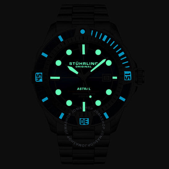 علبة وسوار من الفولاذ المقاوم للصدأ فضي اللون. إطار دوار أحادي الاتجاه من الفولاذ المقاوم للصدأ أزرق اللون. ميناء أزرق مع عقارب وعلامات ساعات فضية اللون. علامات دقائق حول الحافة الخارجية. نوع الميناء: تناظري. عقارب وعلامات مضيئة. عرض التاريخ عند موضع الساعة 3. آلية حركة أوتوماتيكية. زجاج معدني مقاوم للخدش. تاج لولبي. غطاء خلفي شفاف. شكل العلبة دائري، مقاس العلبة: 44 مم، سمكها: 14 مم. عرض السوار: 24 مم، طوله: 7.5 بوصة. مشبك قابل للطي مع مفتاح أمان. مقاومة للماء حتى عمق 200 متر / 660 قدمًا. الوظائف: التاريخ، الساعة، الدقائق، الثواني. سلسلة أكودايفر. طراز ساعة الغوص. ساعة ستورلينغ أوريجينال أكودايفر أوتوماتيكية للرجال بمينا أزرق M16746.