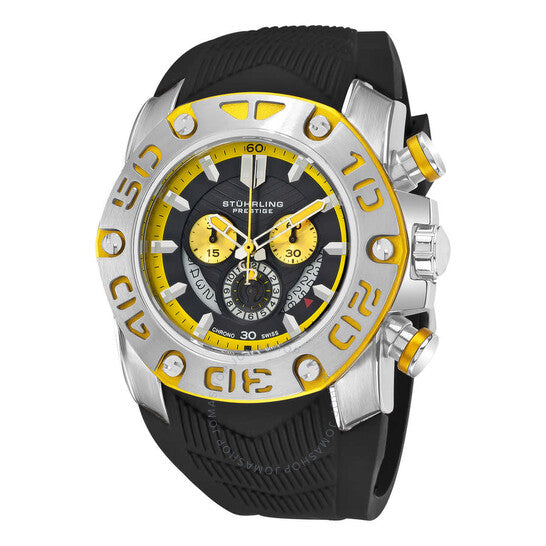 علبة من الفولاذ المقاوم للصدأ فضية اللون مع سوار مطاطي أسود. إطار ثابت من الفولاذ المقاوم للصدأ فضي اللون. ميناء أسود بعقارب فضية اللون وعلامات ساعات. علامات دقائق حول الحافة الخارجية. نوع الميناء: تناظري. عرض التاريخ بين موضعي الساعة 4 و5. كرونوغراف - ثلاثة أقراص فرعية تعرض: 60 ثانية، 30 دقيقة، و12 ساعة. حركة كوارتز. تاج لولبي. غطاء خلفي صلب. شكل دائري، مقاس العلبة: 52 مم، سمكها: 15 مم. مشبك بإبزيم. مقاومة للماء حتى عمق 100 متر / 330 قدم. الوظائف: كرونوغراف، تاريخ، ساعة، دقيقة، ثانية. سلسلة أكودايفر. طراز ساعة الغوص. ساعة ستورلينغ أوريجينال أكودايفر للرجال بمينا سوداء M15254.