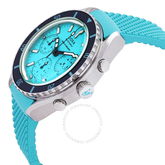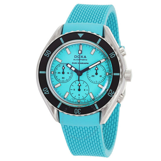 علبة فضية اللون من الفولاذ المقاوم للصدأ مع سوار مطاطي أزرق. إطار أسود دوار أحادي الاتجاه. ميناء أزرق مع عقارب وعلامات ساعات سوداء. علامات دقائق حول الحافة الخارجية. نوع الميناء: تناظري. عقارب وعلامات مضيئة. كرونوغراف - أقراص فرعية تعرض: ١٢ ساعة، ٣٠ دقيقة، ٦٠ ثانية. حركة أوتوماتيكية. كريستال ياقوتي مقاوم للخدش. غطاء خلفي صلب. شكل العلبة دائري، مقاسها: ٤٥ مم. مقاومة للماء حتى عمق ٢٠٠ متر / ٦٦٠ قدمًا. الوظائف: كرونوغراف، ساعات، دقائق، ثوانٍ. سلسلة أكوامارين. علامة الساعة: صناعة سويسرية. ساعة دوكسا أكوامارين كرونوغراف أوتوماتيكية للرجال بمينا زرقاء ٧٩٨.١٠.٢٤١.٢٥.