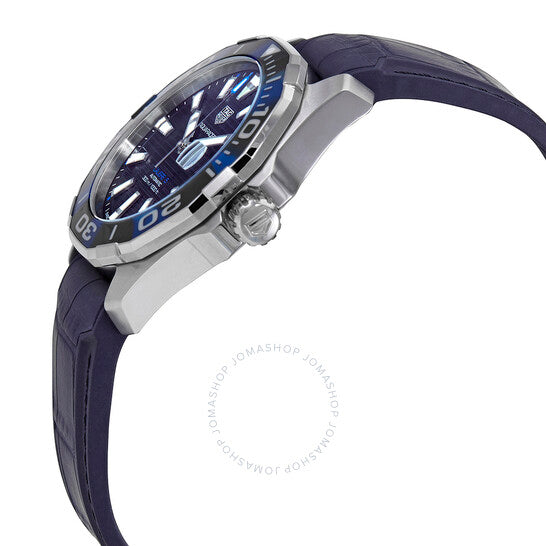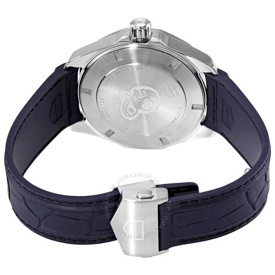 علبة من الفولاذ المقاوم للصدأ مع سوار مطاطي أزرق وسوار علوي من الجلد الأزرق (منقوش بنقشة جلد التمساح). إطار دوار أحادي الاتجاه من الفولاذ المقاوم للصدأ مع تطعيم من الراتنج الأزرق. ميناء أسود بعقارب وعلامات ساعات فضية مضيئة. علامات دقائق حول الحافة الخارجية. نوع الميناء: تناظري. عقارب وعلامات مضيئة. عرض التاريخ عند موضع الساعة 3. حركة أوتوماتيكية من تاغ هوير كاليبر 5، مبنية على ETA 2824-2، تحتوي على 26 جوهرة، تنبض بمعدل 28800 ذبذبة في الساعة، ولديها احتياطي طاقة لمدة 38 ساعة تقريبًا. زجاج ياقوت مقاوم للخدش. تاج لولبي. غطاء خلفي صلب. شكل العلبة اثنا عشري الأضلاع. حجم العلبة: 43 مم. مشبك قابل للطي. مقاومة للماء حتى عمق 300 متر / 1000 قدم. الوظائف: التاريخ، الساعة، الدقيقة، الثانية. سلسلة أكواريسر. طراز ساعة رسمية. علامة الساعة: صناعة سويسرية. ساعة تاغ هوير اكواريسير أوتوماتيكية للرجال بمينا أسود WAY201P.FT6178.