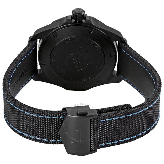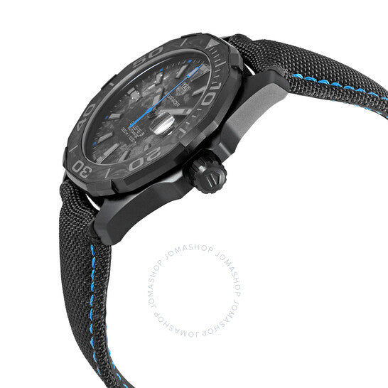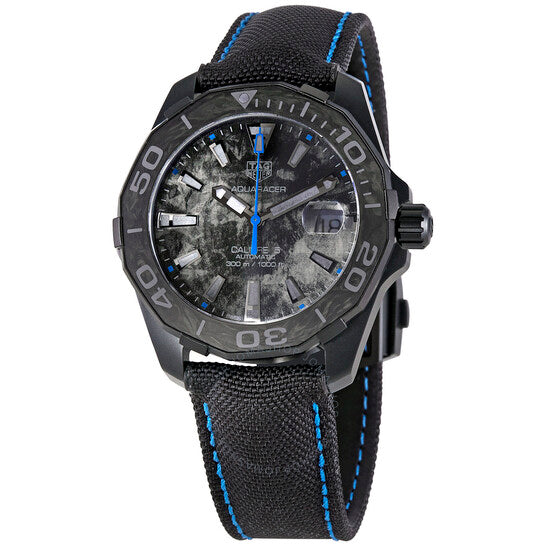 علبة تيتانيوم سوداء مطلية بتقنية PVD مع سوار نايلون أسود-أزرق. إطار دوار أحادي الاتجاه من التيتانيوم الأسود المصقول بالرمل. ميناء أسود بعقارب وعلامات ساعات سوداء. علامات دقائق حول الحافة الخارجية. نوع الميناء: تناظري. عقارب وعلامات مضيئة. عرض التاريخ عند موضع الساعة 3. حركة أوتوماتيكية كاليبر 5 مع احتياطي طاقة لمدة 38 ساعة. زجاج ياقوتي مقاوم للخدش. غطاء خلفي صلب. شكل العلبة اثنا عشري الأضلاع، حجمها: 41 مم، سمكها: 12 مم. مشبك قابل للطي. مقاومة للماء حتى عمق 300 متر / 1000 قدم. الوظائف: التاريخ، الساعة، الدقائق، الثواني. معلومات إضافية: إصدار محدود. سلسلة أكواريسر. علامة الساعة: صناعة سويسرية. ساعة تاغ هوير أكواريسر أوتوماتيكية للرجال بمينا أسود WBD218C.FC6447.