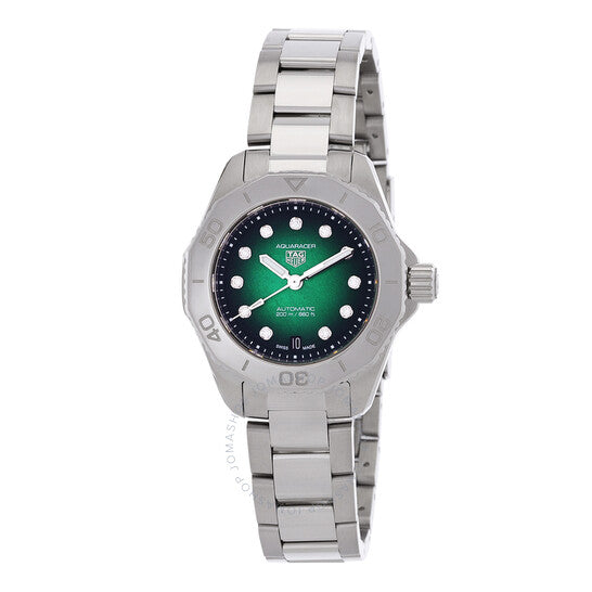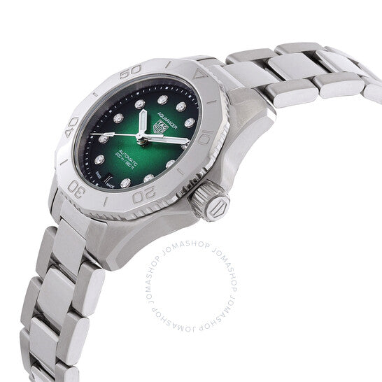 علبة وسوار من الفولاذ المقاوم للصدأ فضي اللون. إطار من الفولاذ المقاوم للصدأ فضي اللون. ميناء أخضر بعقارب فضية اللون وعلامات ساعات من الألماس. علامات دقائق حول الحافة الخارجية. نوع الميناء: تناظري. عقارب مضيئة. عرض التاريخ عند موضع الساعة السادسة. حركة تاغ هوير كاليبر 9 أوتوماتيكية، مبنية على سيليتا SW1000-1، تحتوي على 18 جوهرة، تنبض بمعدل 28800 ذبذبة في الساعة، ولديها احتياطي طاقة يدوم حوالي 40 ساعة. زجاج من الياقوت المقاوم للخدش. تاج لولبي. غطاء خلفي صلب. شكل العلبة دائري، مقاسها: 30 مم. مشبك قابل للطي بزر ضغط. مقاومة للماء حتى عمق 200 متر / 660 قدمًا. الوظائف: التاريخ، الساعة، الدقيقة، الثانية. معلومات إضافية: العلبة الأصلية، بطاقة الضمان الدولية، دليل الاستخدام (ملحقات كاملة). سلسلة أكواريسر. تصميم ساعة فاخرة. ملصق الساعة: صناعة سويسرية. ساعة تاج هوير أكواريسر أوتوماتيكية للسيدات بمينا أخضر مرصعة بالألماس WBP2415.BA0622.