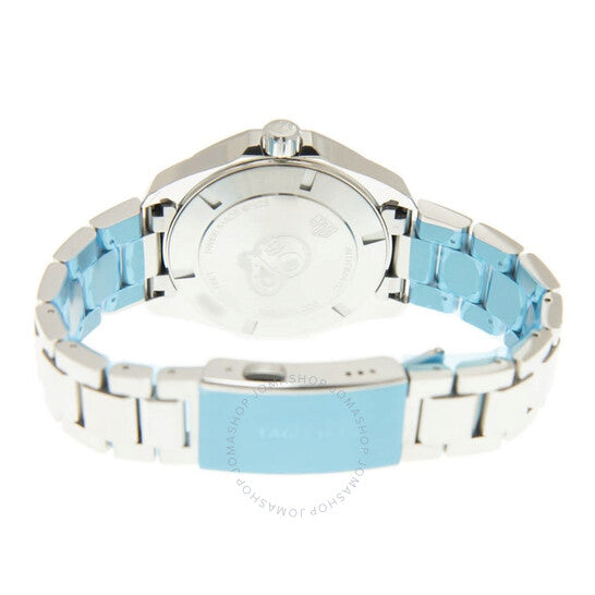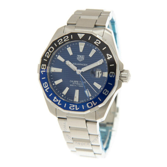 علبة من الفولاذ المقاوم للصدأ مع سوار من الفولاذ المقاوم للصدأ. إطار دوار ثنائي الاتجاه من الفولاذ المقاوم للصدأ مع حلقة ألومنيوم سوداء وزرقاء تُظهر علامات ٢٤ ساعة. ميناء أزرق مع عقارب وعلامات ساعات فضية مضيئة. علامات دقائق حول الحافة الخارجية. نوع الميناء: تناظري. عقارب وعلامات مضيئة. عرض التاريخ عند موضع الساعة الثالثة. حركة أوتوماتيكية من تاغ هوير كاليبر ٧، مبنية على ETA 2892-A2، تحتوي على ٢٥ جوهرة، تنبض بمعدل ٢٨٨٠٠ ذبذبة في الساعة، ولديها احتياطي طاقة لمدة ٤٦ ساعة تقريبًا. زجاج ياقوت مقاوم للخدش. تاج لولبي. غطاء خلفي صلب. حجم العلبة: ٤٣ مم. سمك العلبة: ١٢ مم. عرض السوار: ٢٢ مم. مشبك قابل للطي بزر ضغط. مقاومة للماء حتى عمق ٣٠٠ متر / ٩٨٠ قدمًا. الوظائف: توقيت غرينتش، منطقة زمنية ثانية، ساعة، دقيقة، ثانية. سلسلة أكواريسر. تصميم ساعة فاخرة. ملصق الساعة: صناعة سويسرية. ساعة تاغ هوير اكواريسير أوتوماتيكية للرجال بمينا أزرق WAY201T.BA0927.