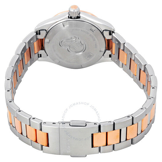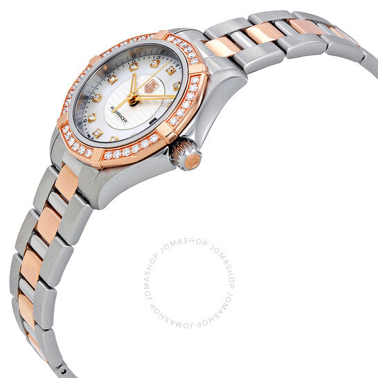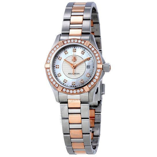 علبة من الفولاذ المقاوم للصدأ مع سوار من الفولاذ المقاوم للصدأ بوصلات من الذهب الوردي عيار 18 قيراطًا. إطار ثابت من الذهب الوردي عيار 18 قيراطًا. ميناء من عرق اللؤلؤ مع عقارب مضيئة من الذهب الوردي وعلامات ساعات من الماس. علامات دقائق حول الحافة الخارجية. نوع الميناء: تناظري. عقارب مضيئة. عرض التاريخ عند موضع الساعة 3. حركة كوارتز. كريستال ياقوت مقاوم للخدش. تاج لولبي. غطاء خلفي صلب. شكل العلبة اثني عشري الأضلاع. حجم العلبة: 27 مم. عرض السوار: 21.6 مم. طول السوار: 8.5 بوصة. قابلة للطي مع مشبك أمان بزر ضغط. مقاومة للماء حتى عمق 200 متر / 660 قدمًا. الوظائف: التاريخ، الساعة، الدقيقة، الثانية. تصميم ساعة فاخرة. علامة الساعة: صناعة سويسرية. إصدارات المنتج: WAP1452 BD0837، WAP1452-BD0837، WAP1452/BD0837، WAP1452BD0837. ساعة تاج هوير أكواريسر للسيدات بمينا من عرق اللؤلؤ WAP1452.BD0837.