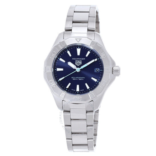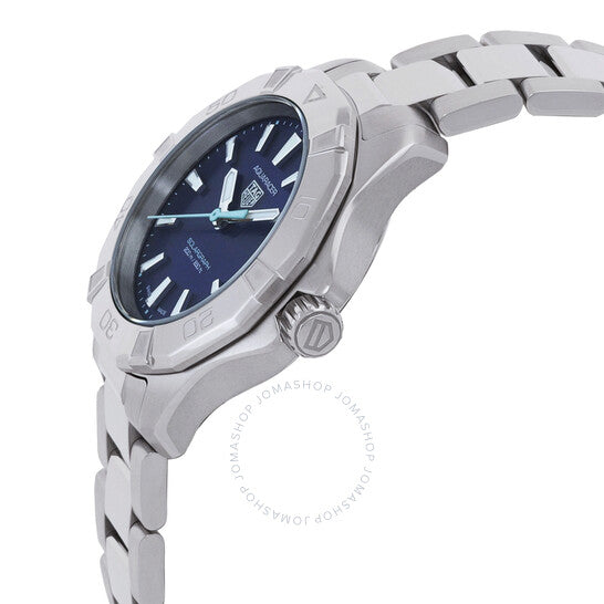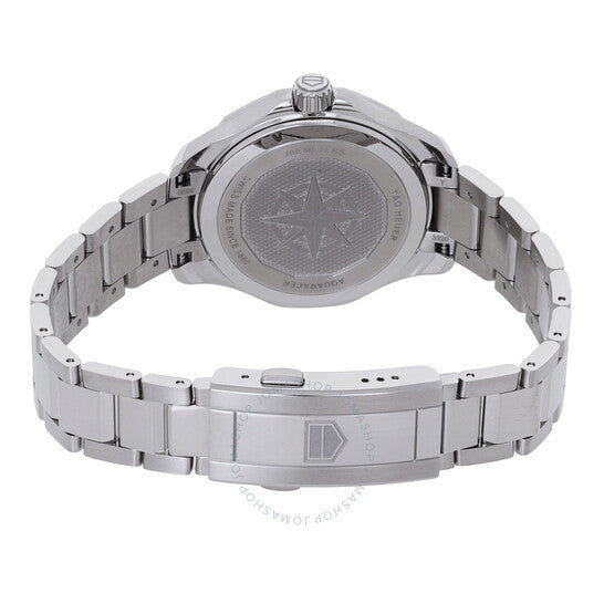 علبة وسوار من الفولاذ المقاوم للصدأ فضي اللون. إطار دوار أحادي الاتجاه من الفولاذ المقاوم للصدأ فضي اللون. ميناء أزرق مع عقارب وعلامات ساعات فضية اللون. علامات دقائق حول الحافة الخارجية. نوع الميناء: تناظري. عقارب وعلامات مضيئة. عرض التاريخ عند موضع الساعة 3. آلية حركة كوارتز. زجاج ياقوتي مقاوم للخدش. تاج لولبي. غطاء خلفي صلب. شكل العلبة دائري، مقاسها: 34 مم. مشبك قابل للطي مع مفتاح أمان. مقاومة للماء حتى عمق 200 متر / 660 قدمًا. الوظائف: التاريخ، الساعة، الدقائق، الثواني. سلسلة أكواريسر. طراز الساعة الرياضية. علامة الساعة: صناعة سويسرية. ساعة تاغ هوير أكواريسر كوارتز نسائية بمينا زرقاء WBP1311.BA0005.
