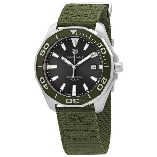علبة من الفولاذ المقاوم للصدأ مع سوار من النايلون بلون كاكي. إطار دوار أحادي الاتجاه من الفولاذ المقاوم للصدأ مع حلقة من الألومنيوم الأخضر. ميناء رمادي ستينغراي مع عقارب ومؤشرات ساعات مضيئة مطلية بالروديوم. مؤشرات دقائق حول الحافة الخارجية. نوع الميناء: تناظري. عقارب ومؤشرات مضيئة. عرض التاريخ عند موضع الساعة 3. حركة كوارتز. زجاج ياقوت مقاوم للخدش. تاج لولبي. غطاء خلفي صلب. شكل العلبة اثنا عشري الأضلاع. حجم العلبة: 43 مم. سمكها: 11.15 مم. عرض السوار: 22 مم. مشبك تانغ. مقاومة للماء حتى عمق 300 متر / 1000 قدم. الوظائف: التاريخ، الساعة، الدقيقة، الثانية. سلسلة أكواريسر. تصميم ساعة فاخرة. علامة الساعة: صناعة سويسرية. ساعة تاغ هوير أكواريسر ستينغراي كوارتز للرجال بمينا رمادية WAY101L.FC8222.
