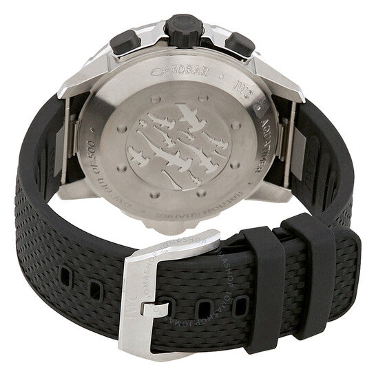 علبة فضية اللون من الفولاذ المقاوم للصدأ مع سوار مطاطي أسود. إطار ميكانيكي دوار خارجي/داخلي من الفولاذ المقاوم للصدأ فضي اللون. ميناء رمادي اللون مع عقارب وعلامات ساعات ذهبية اللون. علامات دقائق حول الحافة الخارجية. نوع الميناء: تناظري. عقارب وعلامات مضيئة. عرض التاريخ عند موضع الساعة 3. كرونوغراف - ميناءان فرعيان يعرضان: 60 ثانية و60 دقيقة. حركة أوتوماتيكية من عيار IWC 89365، مبنية على عيار IWC 89361، تحتوي على 38 جوهرة، تنبض بمعدل 28800 ذبذبة في الساعة، ولديها احتياطي طاقة لمدة 68 ساعة تقريبًا. زجاج من الياقوت المقاوم للخدش. تاج لولبي. غطاء خلفي صلب. شكل دائري، حجم العلبة: 44 مم، سمكها: 16.9 مم. مشبك بإبزيم دبوسي. مقاومة للماء حتى عمق 300 متر / 1000 قدم. الوظائف: كرونوغراف، تاريخ، ساعة، دقيقة، ثانية. سلسلة Aquatimer. طراز ساعة الغوص. علامة الساعة: صنع في سويسرا. ساعة IWC Aquatimer أوتوماتيكية للرجال بمينا رمادية كرونوغراف IW379506.