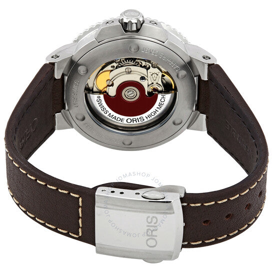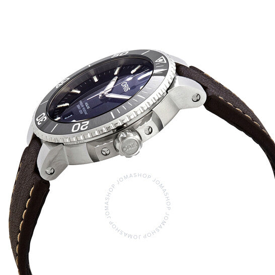 علبة من الفولاذ المقاوم للصدأ فضية اللون مع سوار من جلد العجل البني. إطار سيراميك أسود دوار أحادي الاتجاه بحافة معدنية. ميناء أزرق مع عقارب وعلامات ساعات فضية اللون. علامات دقائق حول الحافة الخارجية. نوع الميناء: تناظري. عقارب وعلامات مضيئة. عرض التاريخ عند موضع الساعة السادسة. حركة أوريس كاليبر 733 أوتوماتيكية، مبنية على سيليتا SW200-1، تحتوي على 26 جوهرة، تنبض بمعدل 28800 ذبذبة في الساعة، ولديها احتياطي طاقة يدوم حوالي 38 ساعة. زجاج من الياقوت المقاوم للخدش. تاج لولبي. غطاء خلفي شفاف. شكل العلبة دائري، مقاسها: 39.5 مم. عرض السوار: 21 مم. مشبك قابل للطي. مقاومة للماء حتى عمق 300 متر / 1000 قدم. الوظائف: التاريخ، الساعة، الدقائق، الثواني. سلسلة Aquis. طراز ساعة الغوص. علامة الساعة: صناعة سويسرية. ساعة أوريس أكويس أوتوماتيكية للرجال بمينا أزرق 01 733 7732 4135-07 5 21 10FC.