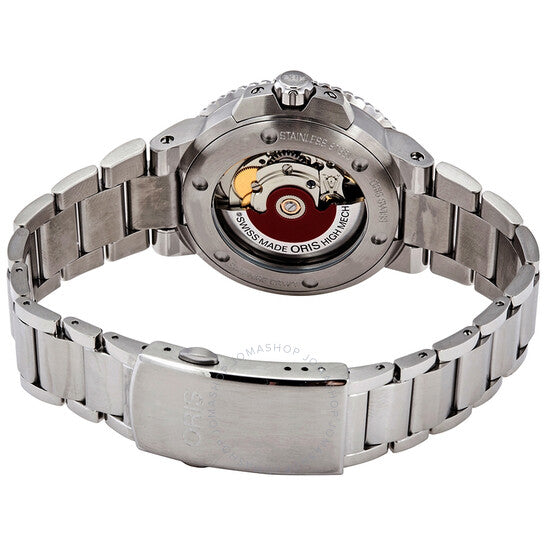 علبة من الفولاذ المقاوم للصدأ مع سوار من الفولاذ المقاوم للصدأ. إطار دوار أحادي الاتجاه من الفولاذ المقاوم للصدأ بحافة عملة معدنية مع حلقة سيراميك سوداء (للعد التصاعدي للوقت المنقضي). ميناء أزرق مع عقارب وعلامات ساعات فضية مضيئة على شكل حرف ألفا. علامات دقائق حول الحافة الخارجية. نوع الميناء: تناظري. عقارب وعلامات مضيئة. عرض التاريخ عند موضع الساعة السادسة. حركة أوريس أوتوماتيكية عيار 733، مبنية على سيليتا SW200-1، تحتوي على 26 جوهرة، تنبض بمعدل 28800 ذبذبة في الساعة، ولديها احتياطي طاقة لمدة 38 ساعة تقريبًا. كريستال ياقوت مقاوم للخدش. تاج لولبي. غطاء خلفي شفاف. شكل دائري. حجم العلبة: 39.5 مم. عرض السوار: 21 مم. مشبك قابل للطي بزر ضغط للتحرير. مقاومة للماء حتى عمق 300 متر / 1000 قدم. الوظائف: التاريخ، الساعة، الدقيقة، الثانية. سلسلة Aquis. طراز ساعة الغوص. ملصق الساعة: صناعة سويسرية. ساعة أوريس أكويس للرجال أوتوماتيكية بمينا أزرق 01 733 7732 4135-07 8 21 05PEB.